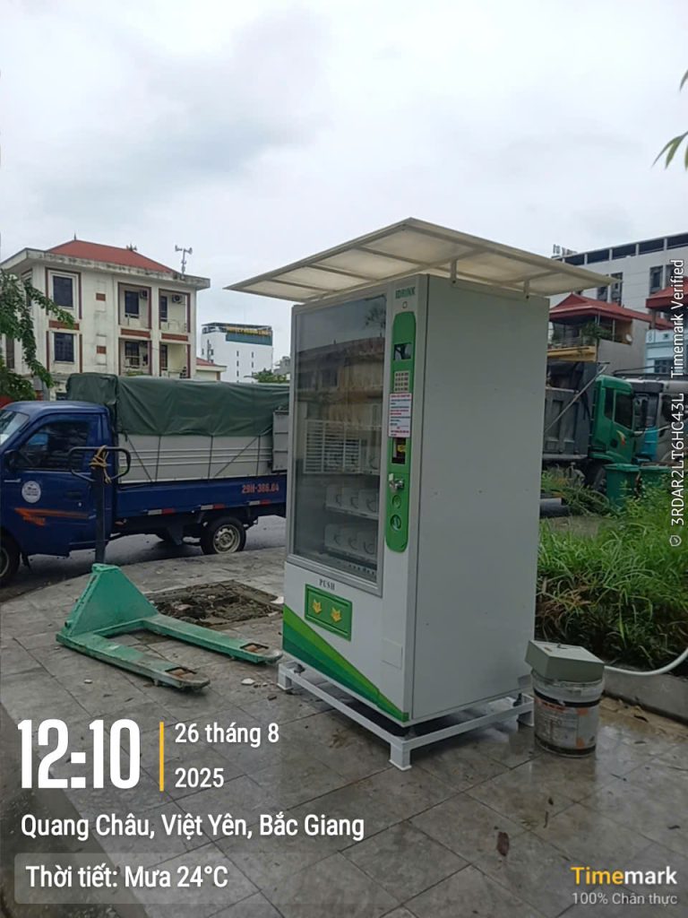 Bàn giao 1 máy Bán hàng tự động QR Code trước Trụ sở Công an phường Nếnh, Bắc Ninh